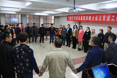 近日,由万华人资组织的甘肃万华实业集团首期五常道培训于甘肃农业大学举办。此次培训为期2天,万华集团共有来自11个单位的37名中高层管理人员参加此次培训。培训详细讲解了五常的概念,提出了五常在企业管理中正确使用的建议,并通过提高中高层管理人员对五常的理解和践行,带动集团全体员工对仁义礼智信的学习和运用,以期提升万华人的素质,达成万华人共同的愿景,共同为建立万华人的幸福家园而努力奋斗!