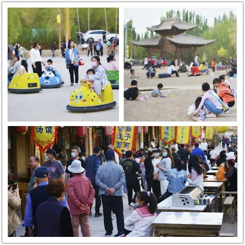 5月1日,千年敦煌·月牙泉小民俗文化旅游景区迎来了2021年首次游客高峰。精彩纷呈的文化活动和超值优惠,让月牙泉小镇的游客们收获满满、不虚此行。